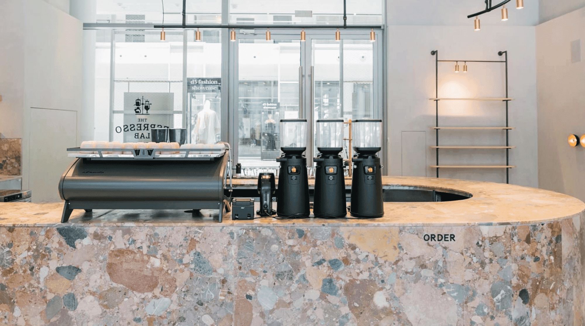 المساحة هي درس في التصميم مع الرمادي المحيطة، وأرضيات الأسمنت المصقولة، ونوافذ كبيرة مخصصة، وقطع فنية مختارة تعطيها جوًا راقيًا، شبه معرض. لكن دعونا نتحدث عن القهوة.